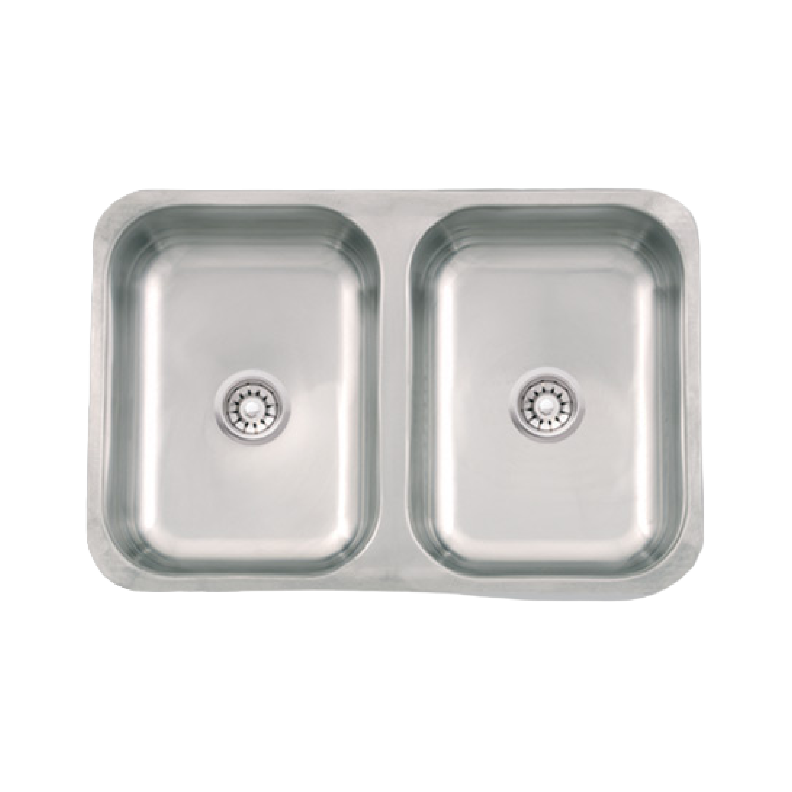 Pileta doble bajo mesada / Línea Economica / Acero AISI 304 18/08 / Medidas: 0.57 de largo x 0.37 de ancho x 0.15 de profundidad.