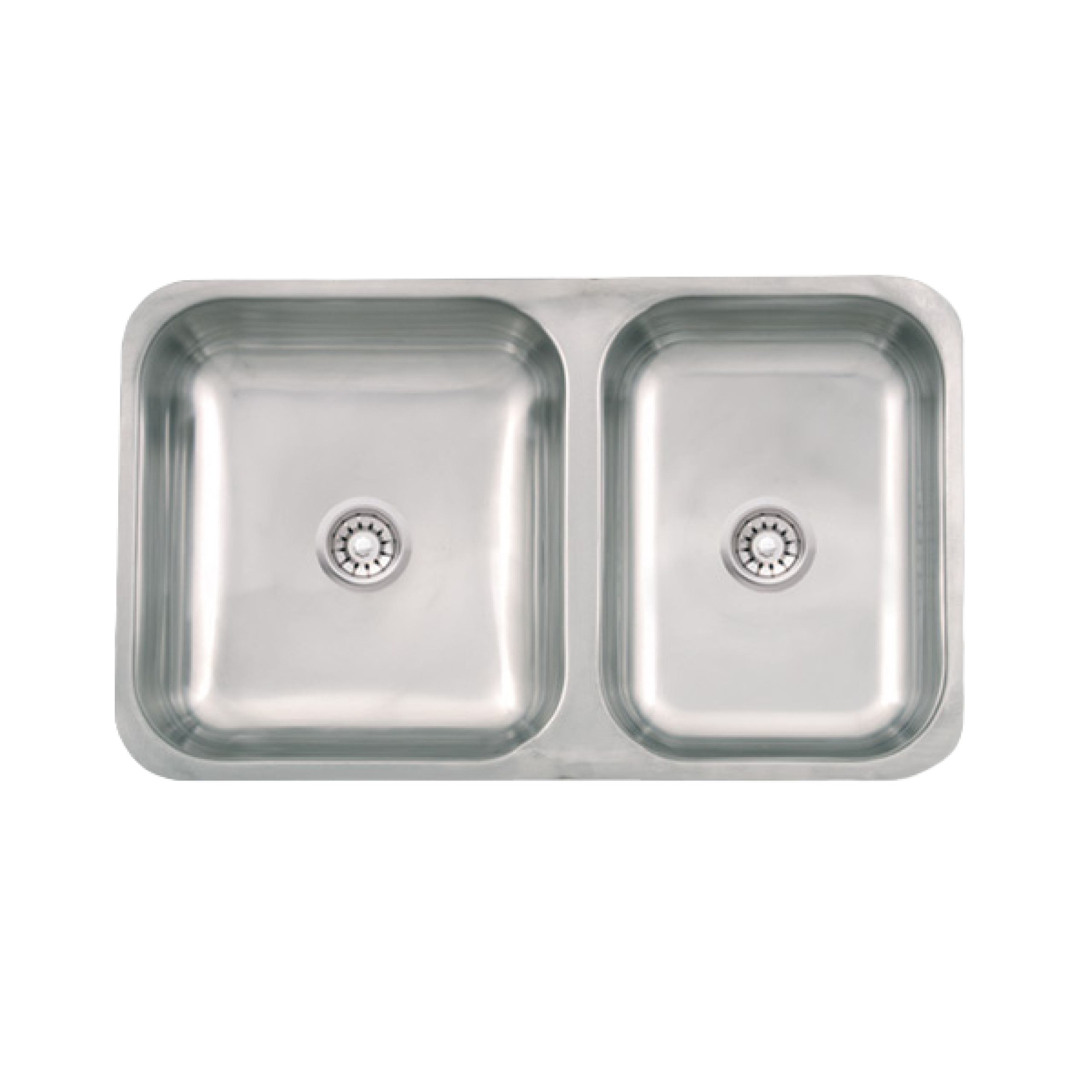 Pileta doble bajo mesada / Línea Economica / Acero AISI 304 18/08 / Medidas: 0.64 de largo x 0.37 de ancho x 0.15 de profundidad.