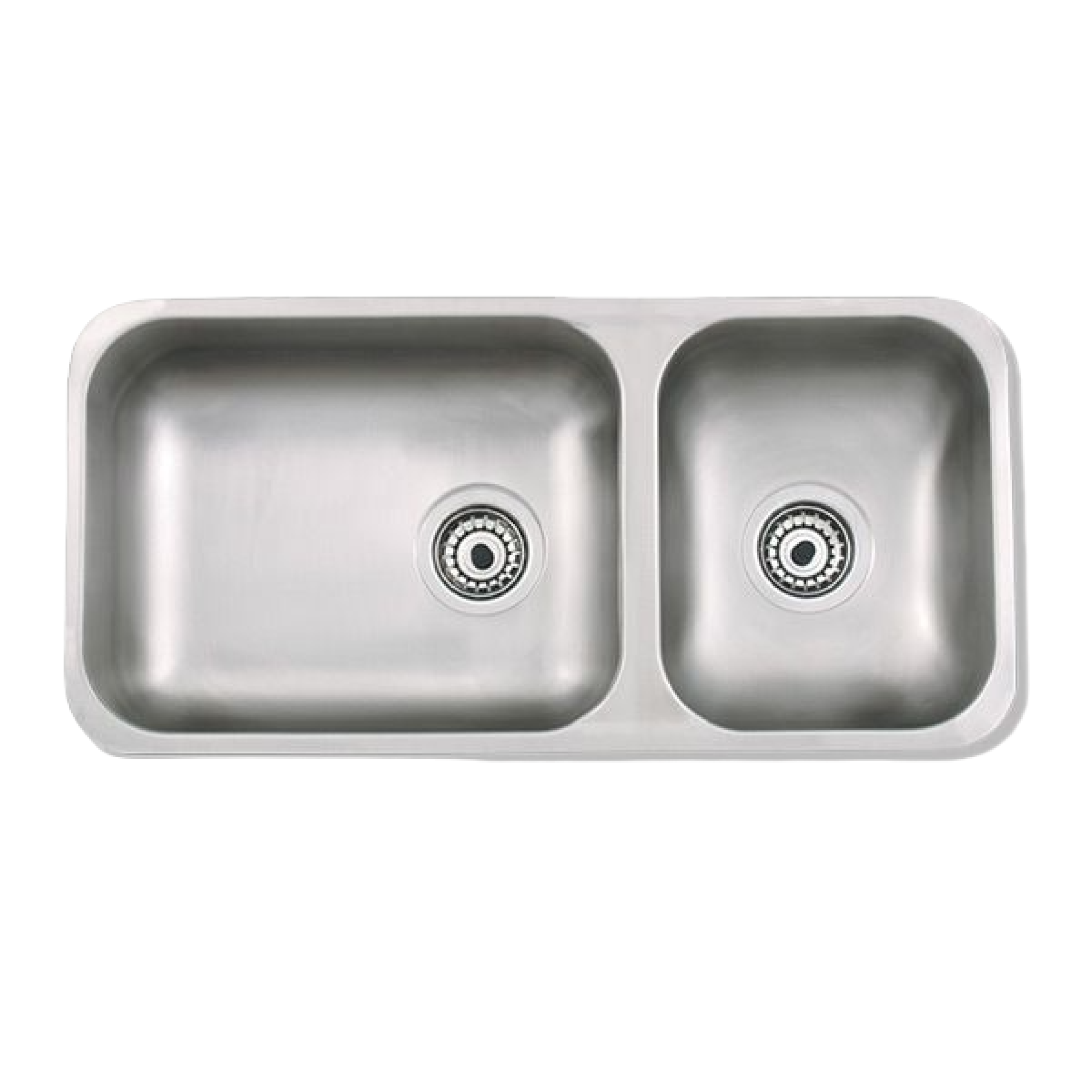 Pileta doble bajo mesada / Línea Lujo / Acero AISI 304 18/08 / 2 bachas / Medidas: 0.74 de largo x 0.34 de ancho x 0.20 de profundidad.