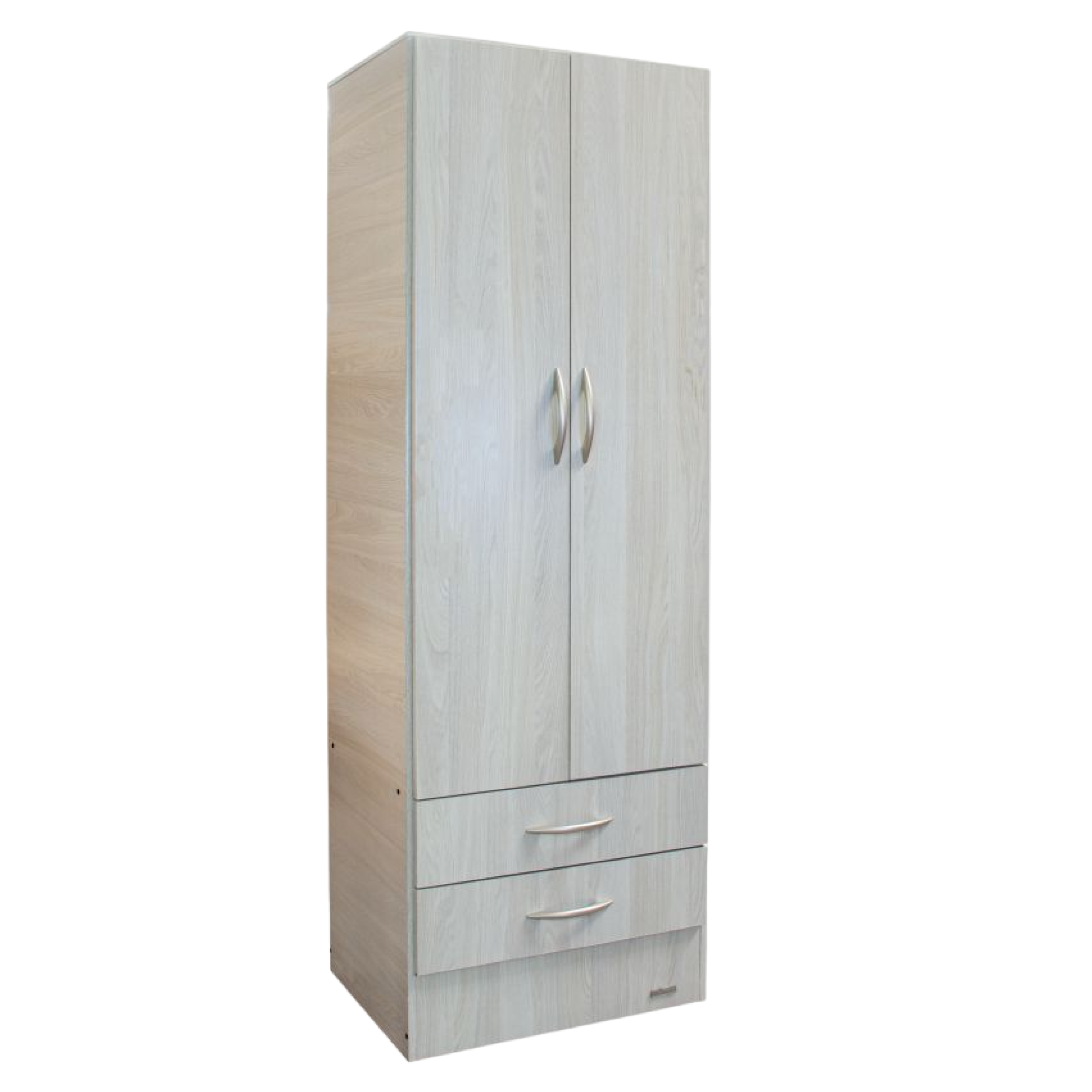 Fabricado en melamina color gris andino / 2 puertas de abrir / 2 cajones con correderas metálicas / 1 barral / Medidas: 0.62 de ancho x 0.48 de profundidad x 1.85 de alto.