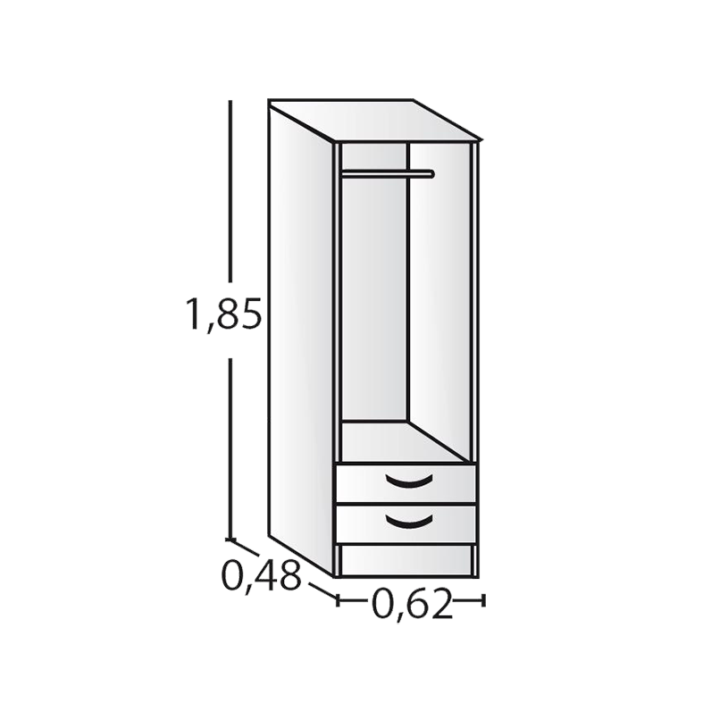 Fabricado en melamina color gris andino / 2 puertas de abrir / 2 cajones con correderas metálicas / 1 barral / Medidas: 0.62 de ancho x 0.48 de profundidad x 1.85 de alto.