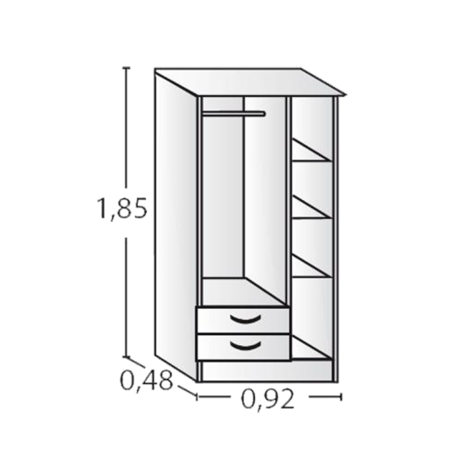 Fabricado en melamina color savanna / 3 puertas de abrir / 2 cajones con correderas metálicas / 1 barral / 3 estantes / Medidas: 0.92 de ancho x 0.48 de profundidad x 1.85 de alto.