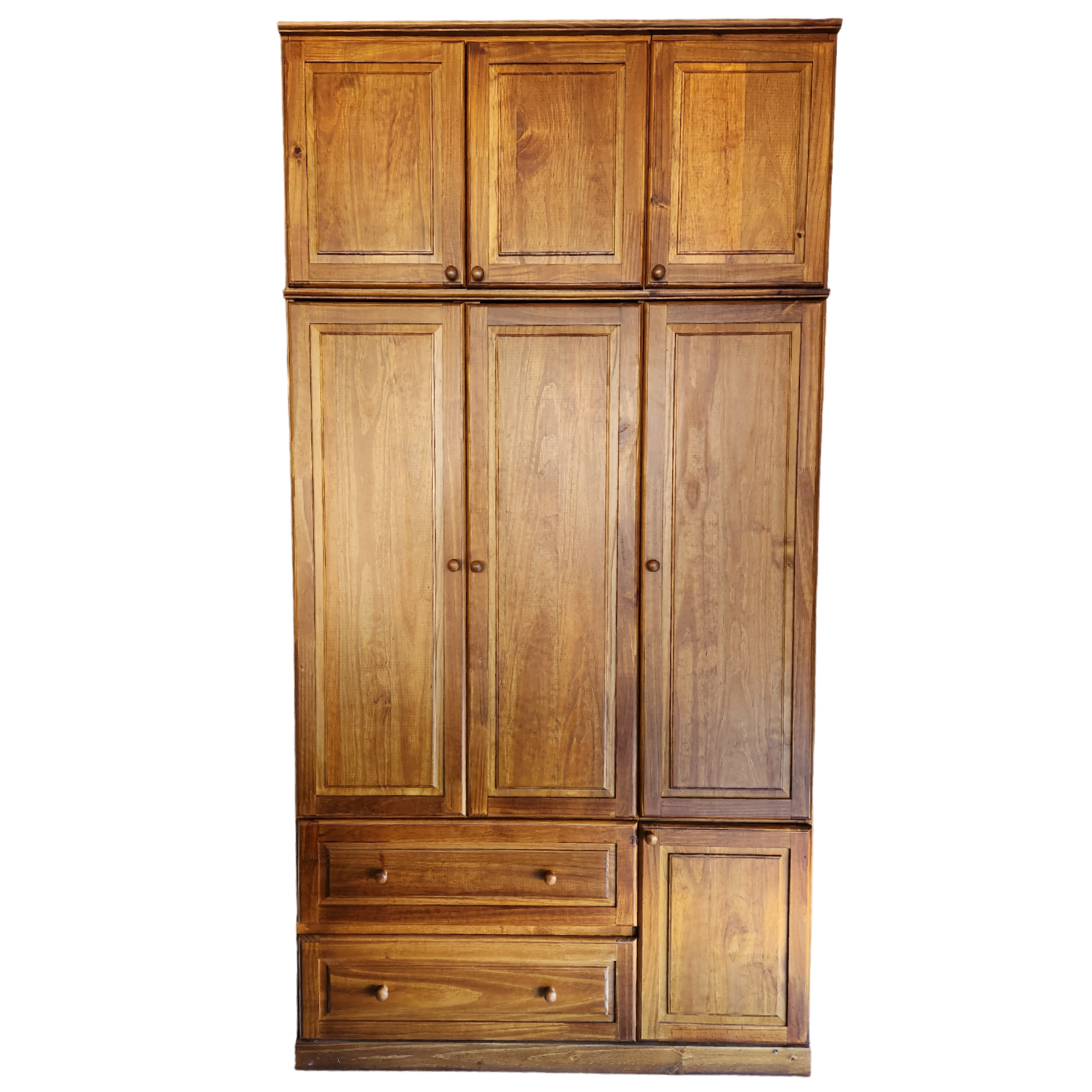 Fabricado en pino misionero / 2 Cajones / 4 puertas + baulera / Lustre caramelo / Medidas: 1.20×2.35×0.55 Mts.