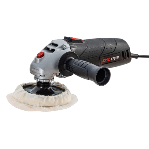 Potencia: 470W / Rotacion: 2.800 min-1 / Eje: M 14 / Disco de 5 pulgadas o 130mm / Empuñadura auxiliar / Boton traba / Dos posiciones en la empuñadura / Incluye: 1 gorra piel, 1 disco de goma de 130mm.