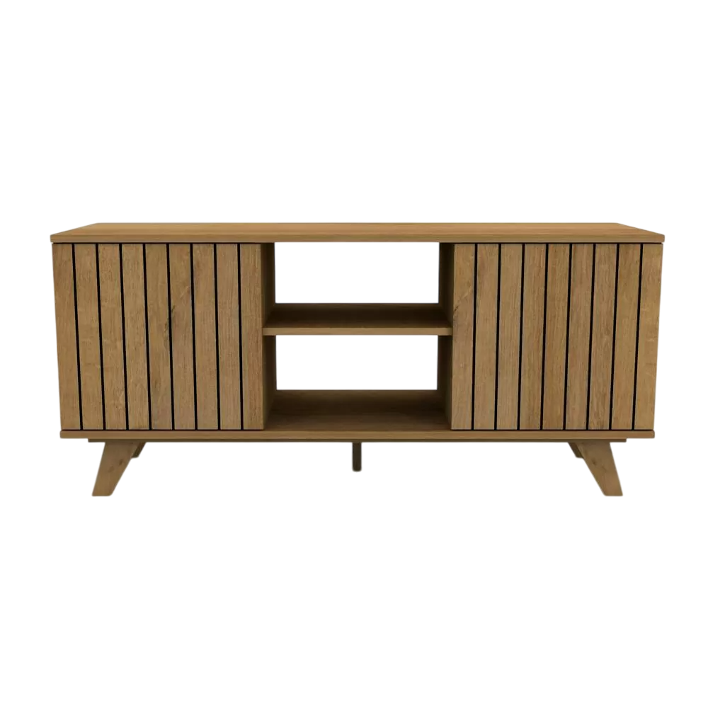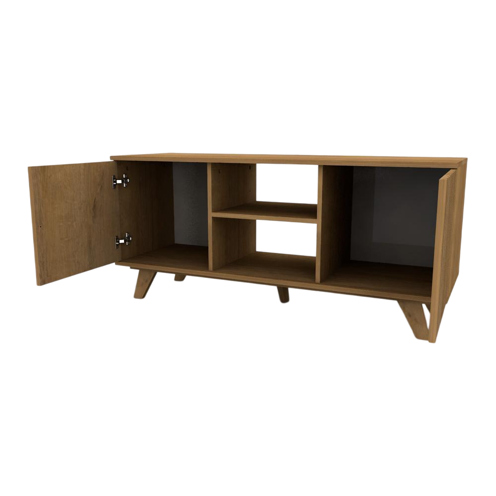 Rack para tv / 1 estante y 2 puertas / Patas escandinavas / Medidas: 120x40x55cm / Color: roble miel.