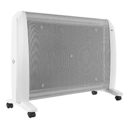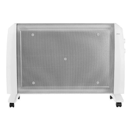 Radiador con panel de Mica / 2000 Watts / 2 niveles de potencia / Termostato regulable / Corte de seguridad por caida y sobrecalentamiento / Con ruedas para fácil traslado.