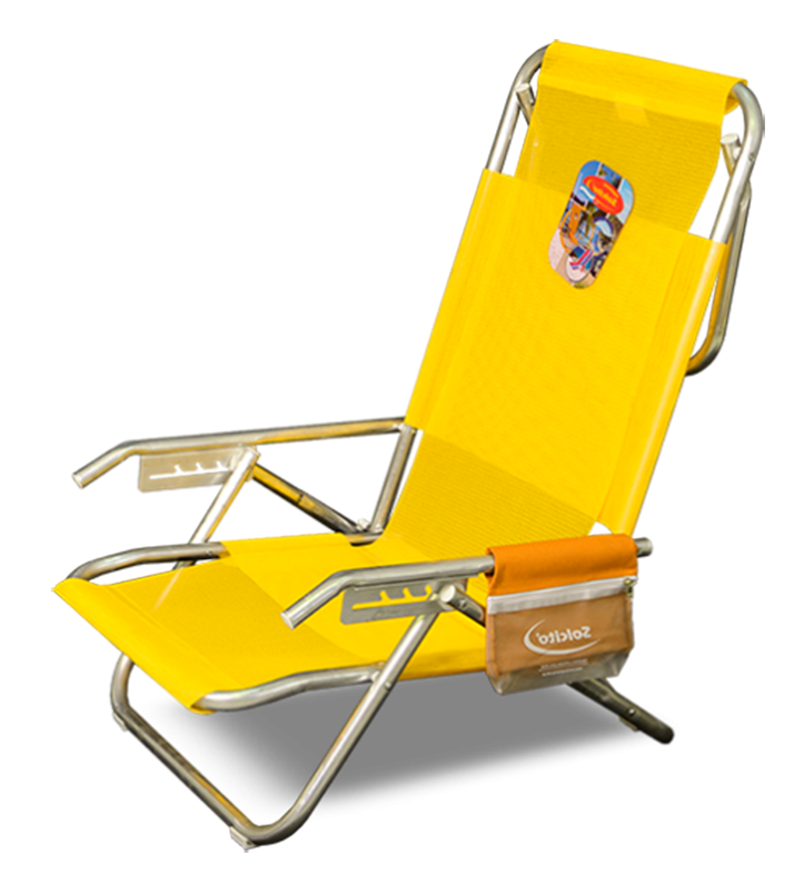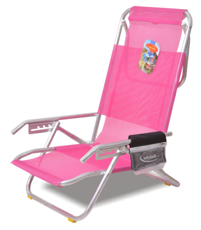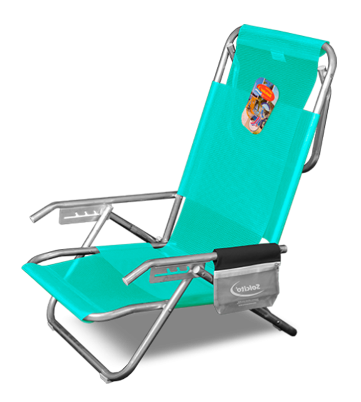 Tela PVC Solwind / Tubos de aluminio 7/8 / 5 posiciones / Bolsillo porta objetos / Soporte en el respaldo para apoyo en su última posición.