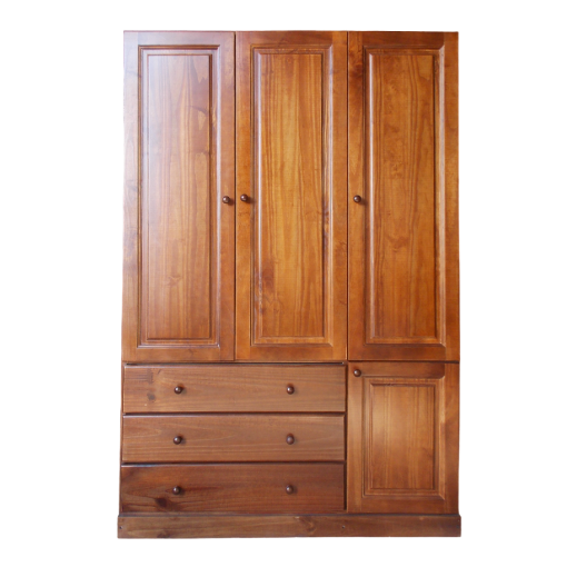 Fabricado en pino misionero / 3 Cajones / 3 Puertas / Lustre cedro / Medidas: 1.20 x 0.55 Mts.