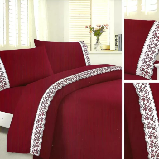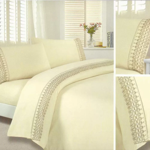 Juego de sábanas para cama de hasta 2.00×2.00×0.35mts / Diseño broderie / 400 hilos / Consultar colores.