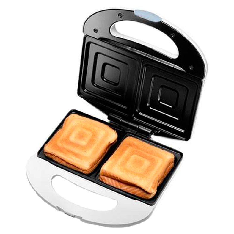 700W / Luces indicadoras / Placas antiadherentes / Capacidad para 2 sandwiches / Color blanca.