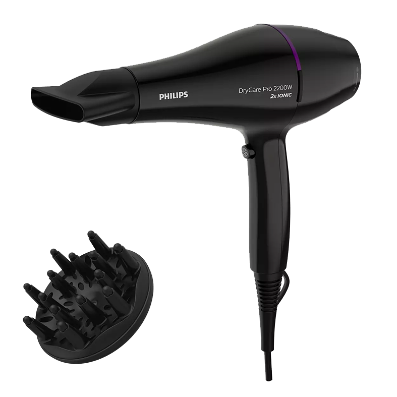 Potencia: 2200W / Motor AC / 6 combinaciones de velocidad-temperatura + golpe de aire frio / Tecnología ThermoProtect / X2 Ionic care: cabello brillante y sin frizz / Incluye boquilla concentradora y difusor / Negro.