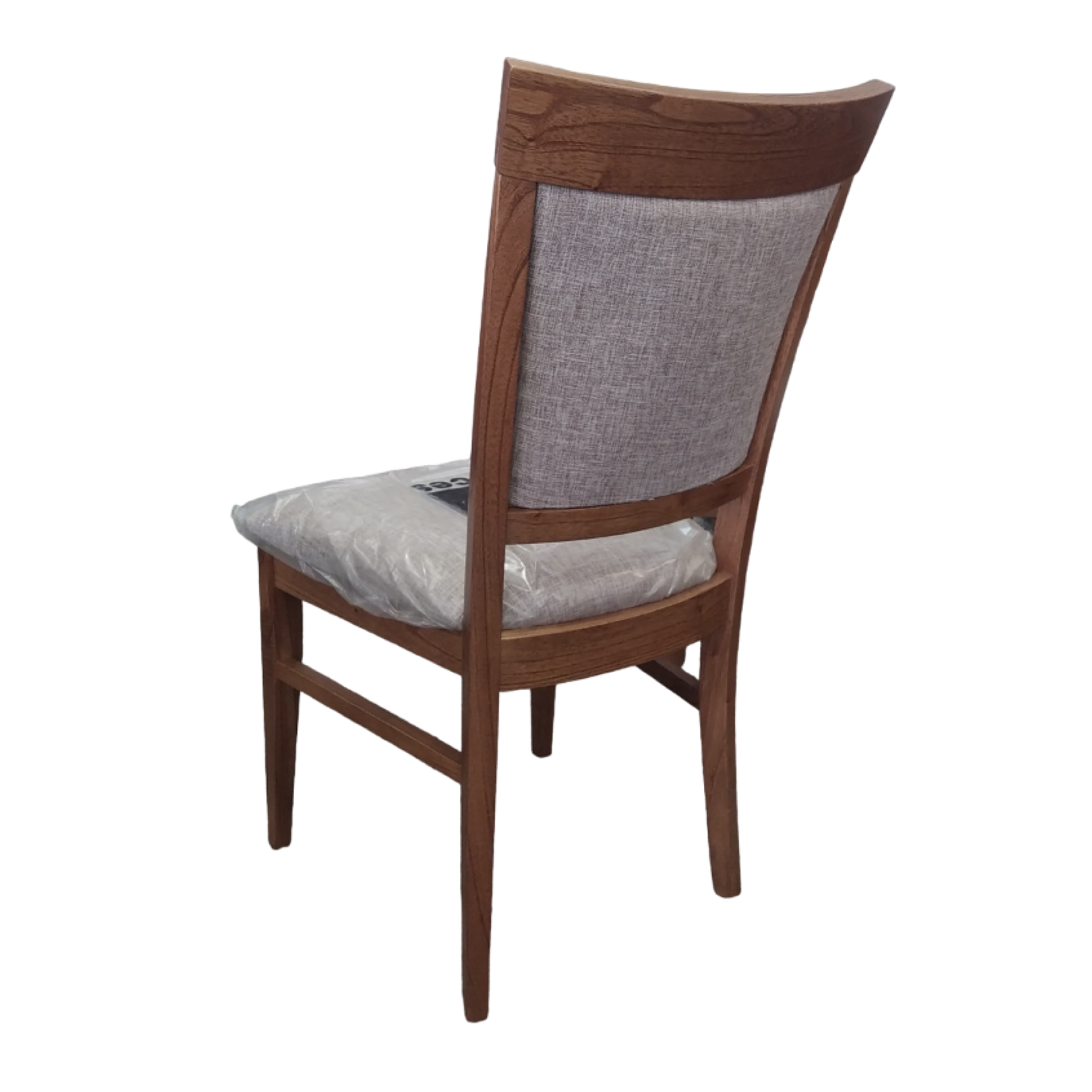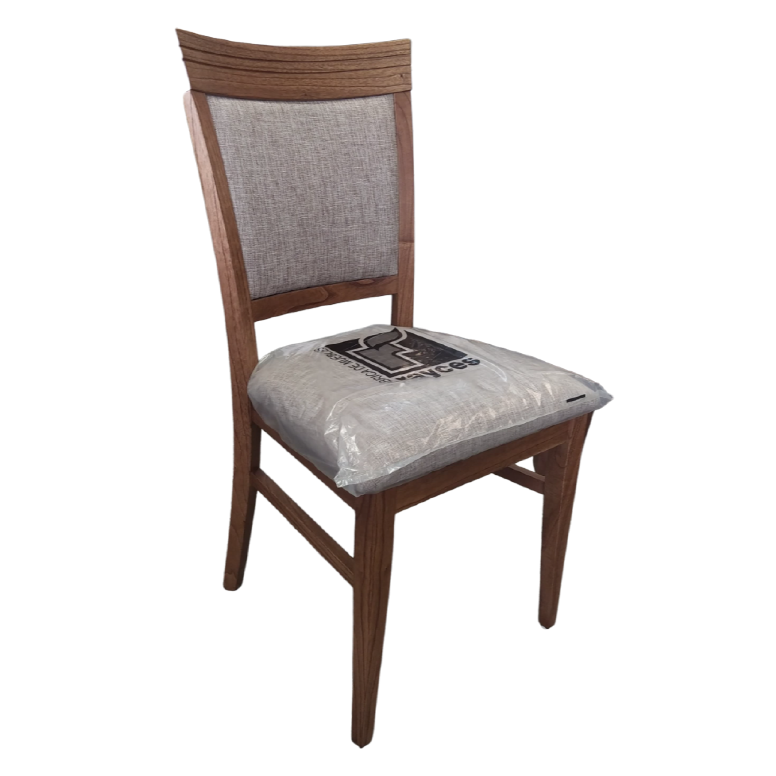Fabricada en madera de paraiso / Lustre cedro / Asiento y respaldo tapizado en tela grupo 2.