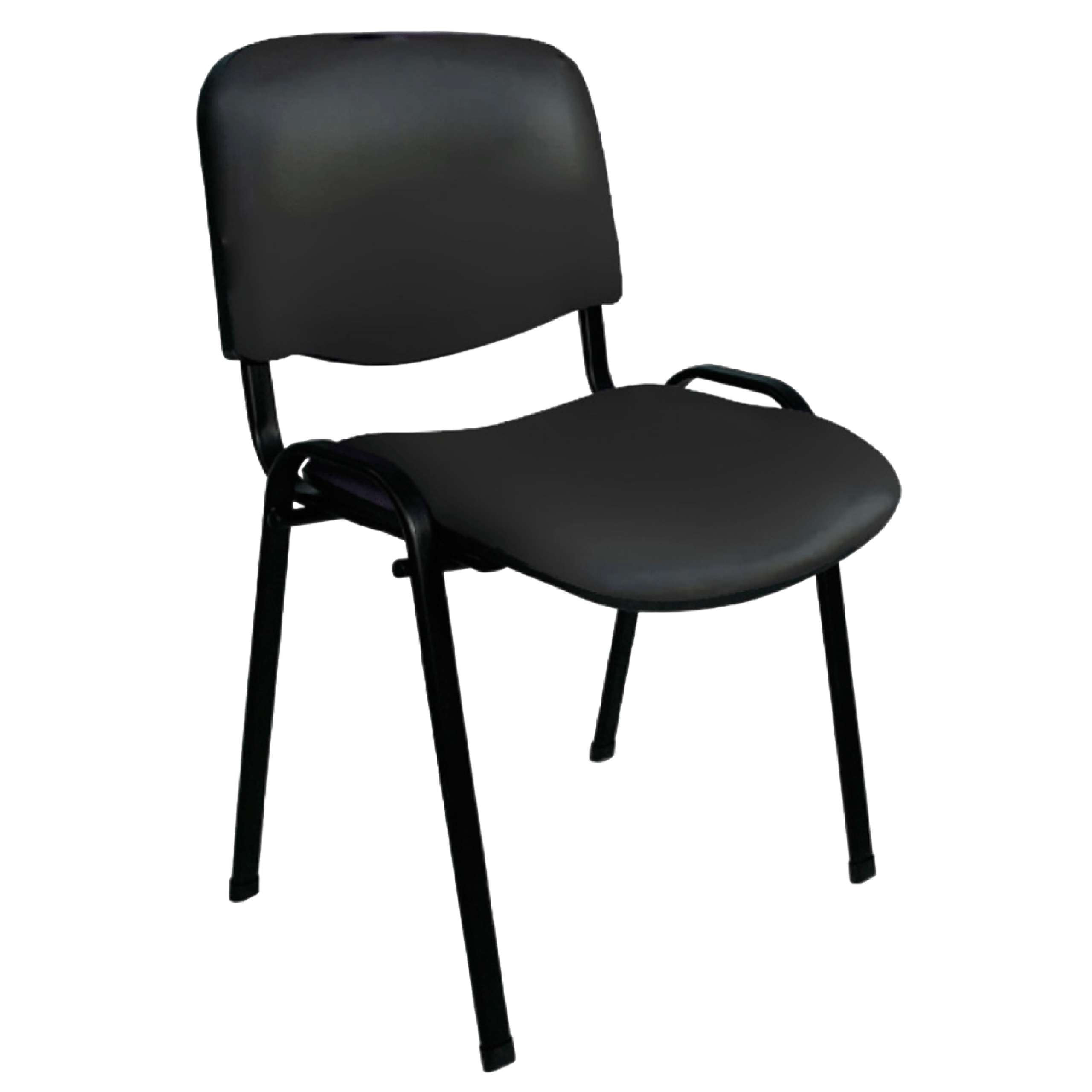 Apilable / Asiento y respaldo tapizados en eco cuero negro / Sin brazos.