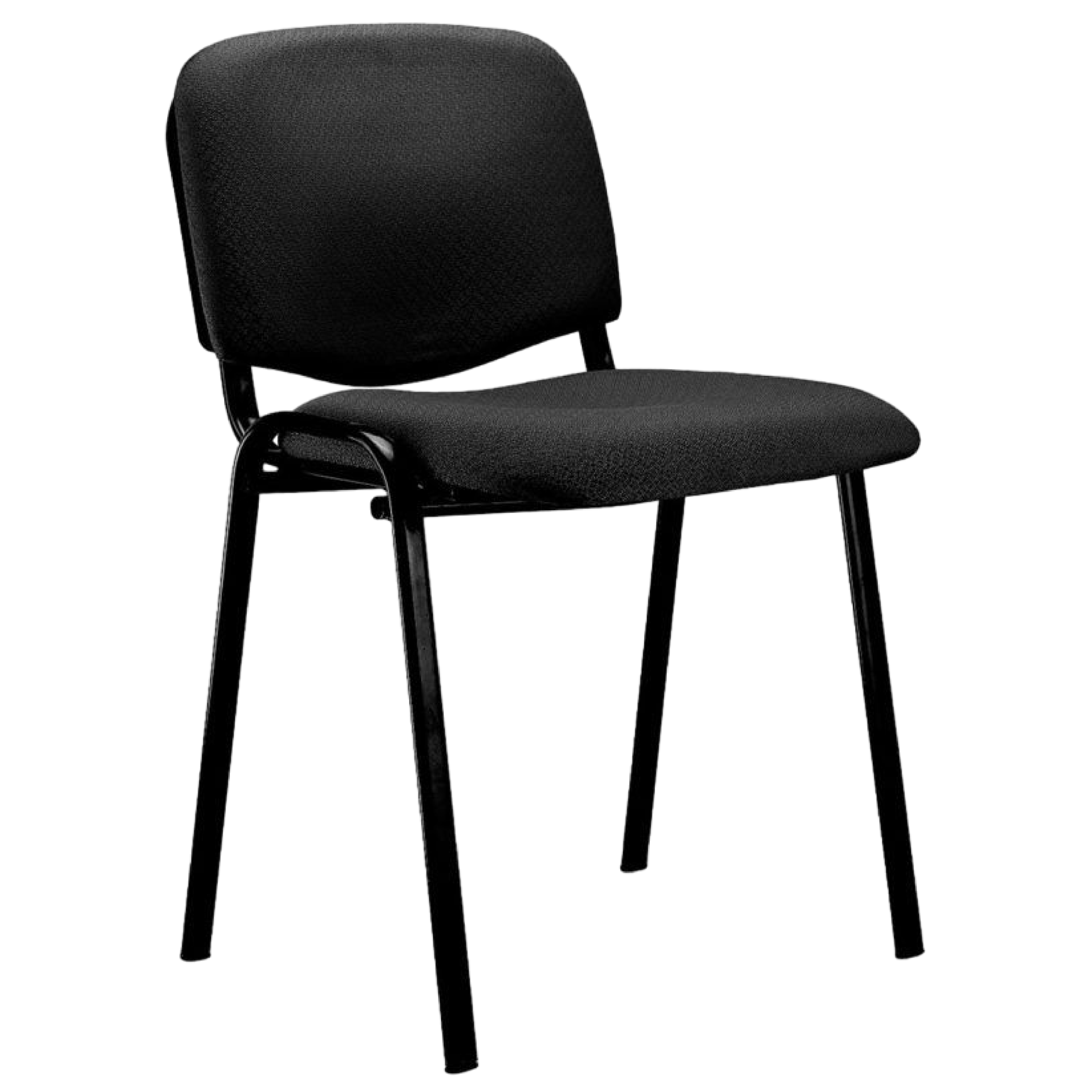 Apilable / Asiento y respaldo tapizados en tela negra / Estructura de caño pintado negro / Sin brazos.