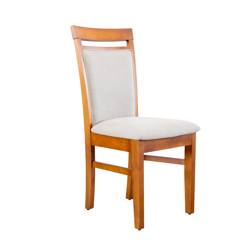 Estructura de madera maciza / Lustre miel / Asiento y respaldo tapizado en tela grupo 2.