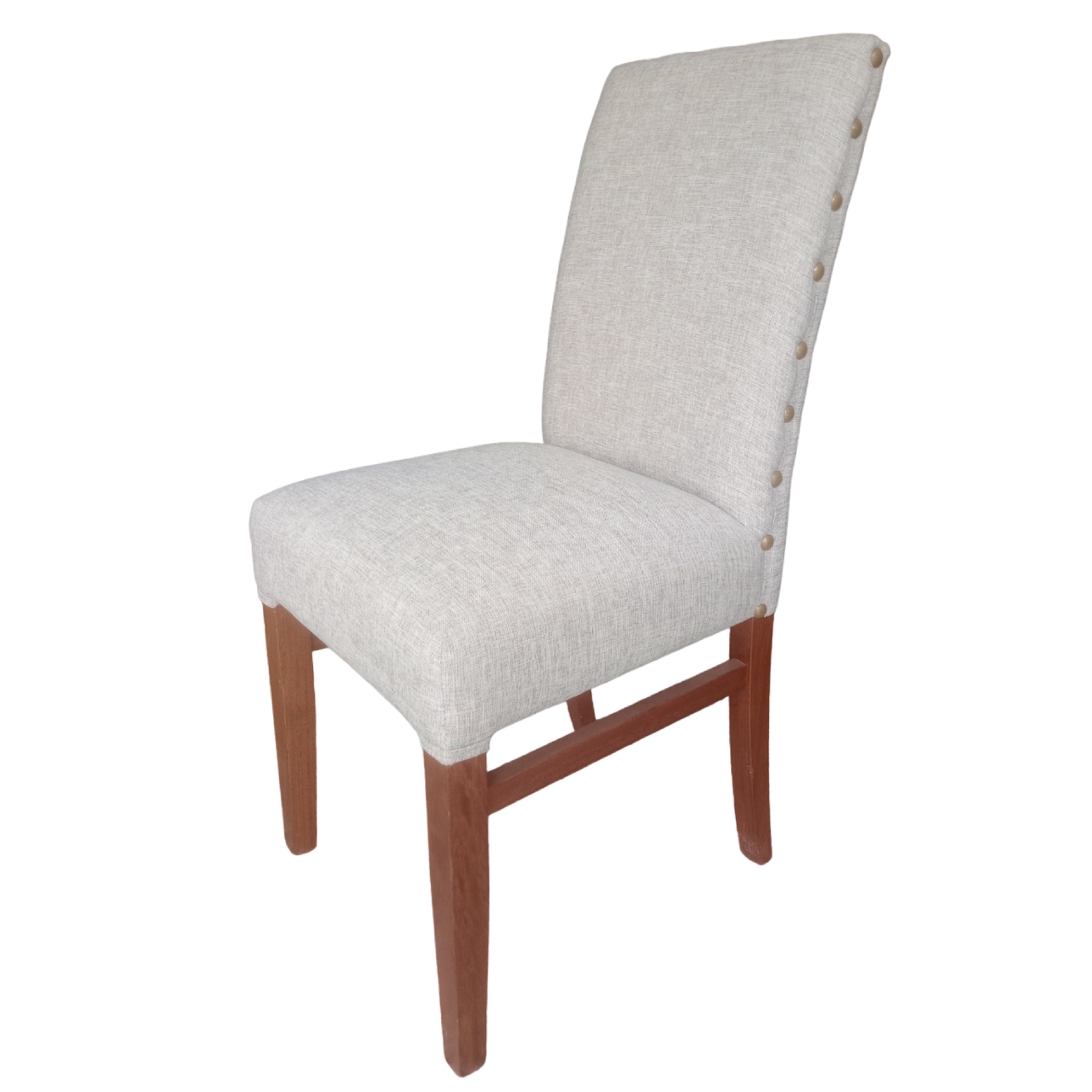 Estructura en madera lustre cherry / Enteramente tapizada en tela grupo 2 / Con tachas.