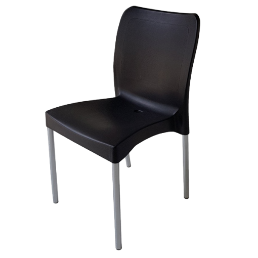 Plástica / Sin apoyabrazos / Patas pintadas / Color negra.