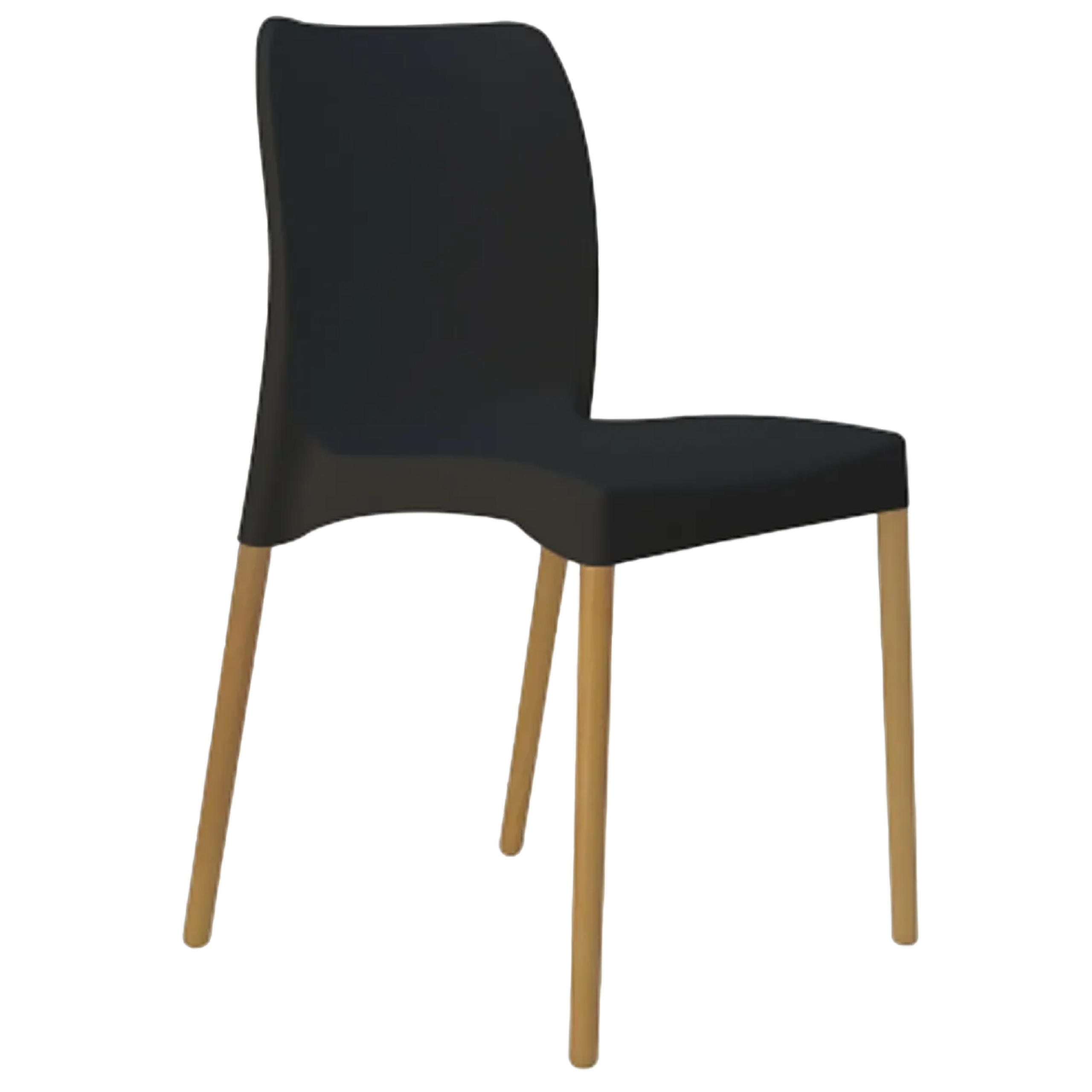 Sin apoyabrazos / Casco en polipropileno negro / Patas de madera estilo nórdico.