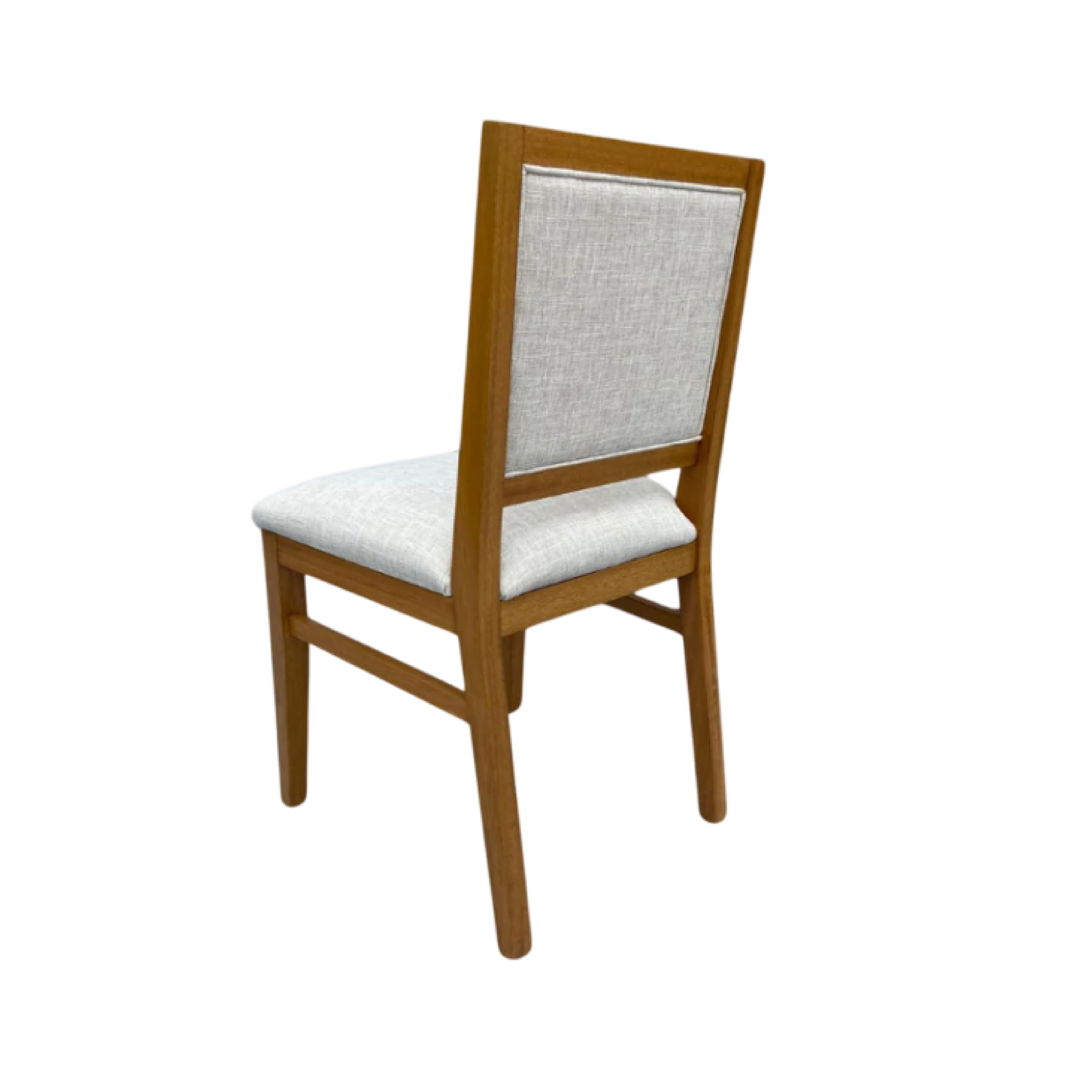 Silla tapizada en tela grupo 2 / Estructura de madera en lustre habano claro.