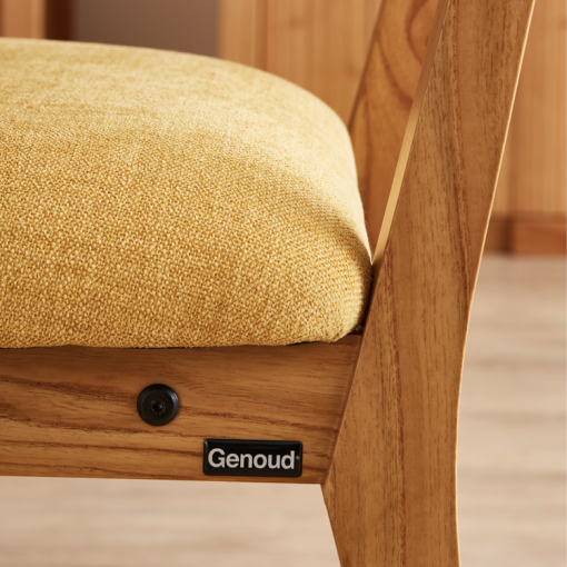 Fabricada en madera paraiso / Asiento y respaldo tapizado en tela / Color: Roble.