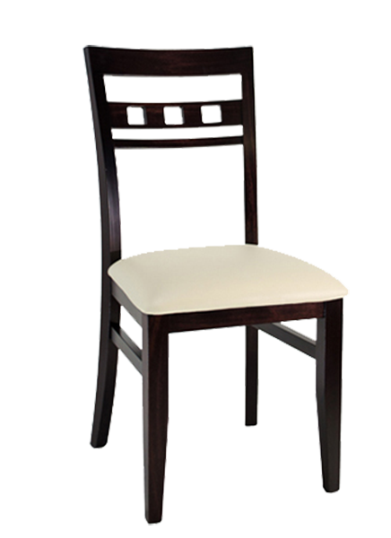 Fabricada en paraiso / Lustre wengue / Respaldo calado / Asiento tapizado en tela grupo 2