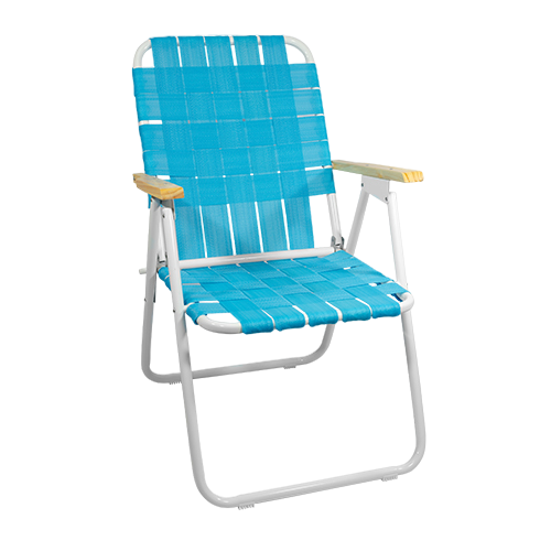 Cintas de polietileno tejidas / Caño 7/8 pintado blanco / Apoyabrazos de madera / Medidas: 56x54cm respaldo y 47x42cm asiento / Colores surtidos.