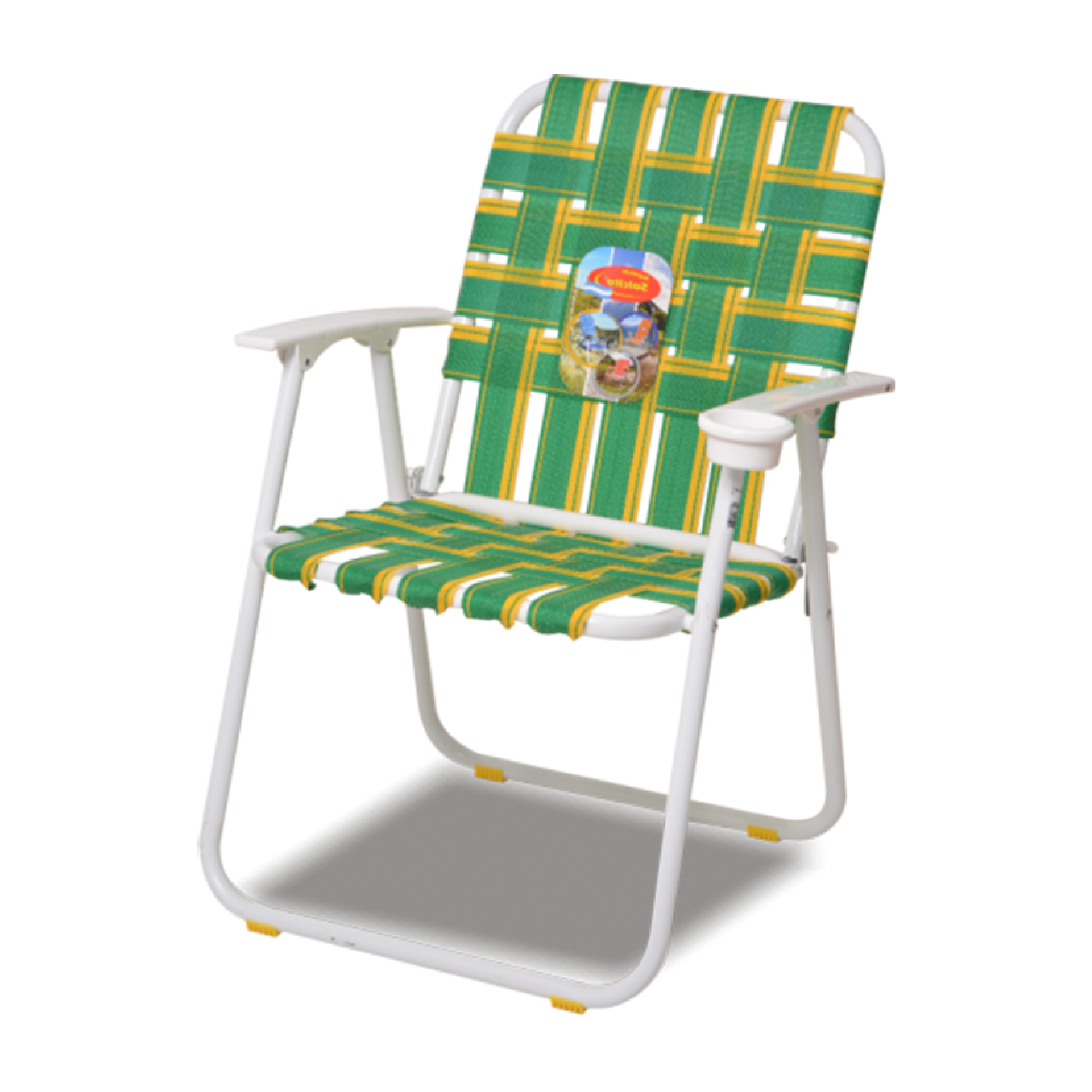 Cintas de polietileno tejidas / Caño 7/8 de diámetro recubierto en pintura epoxi-poliester blanca / Apoyabrazos plásticos con posavasos.