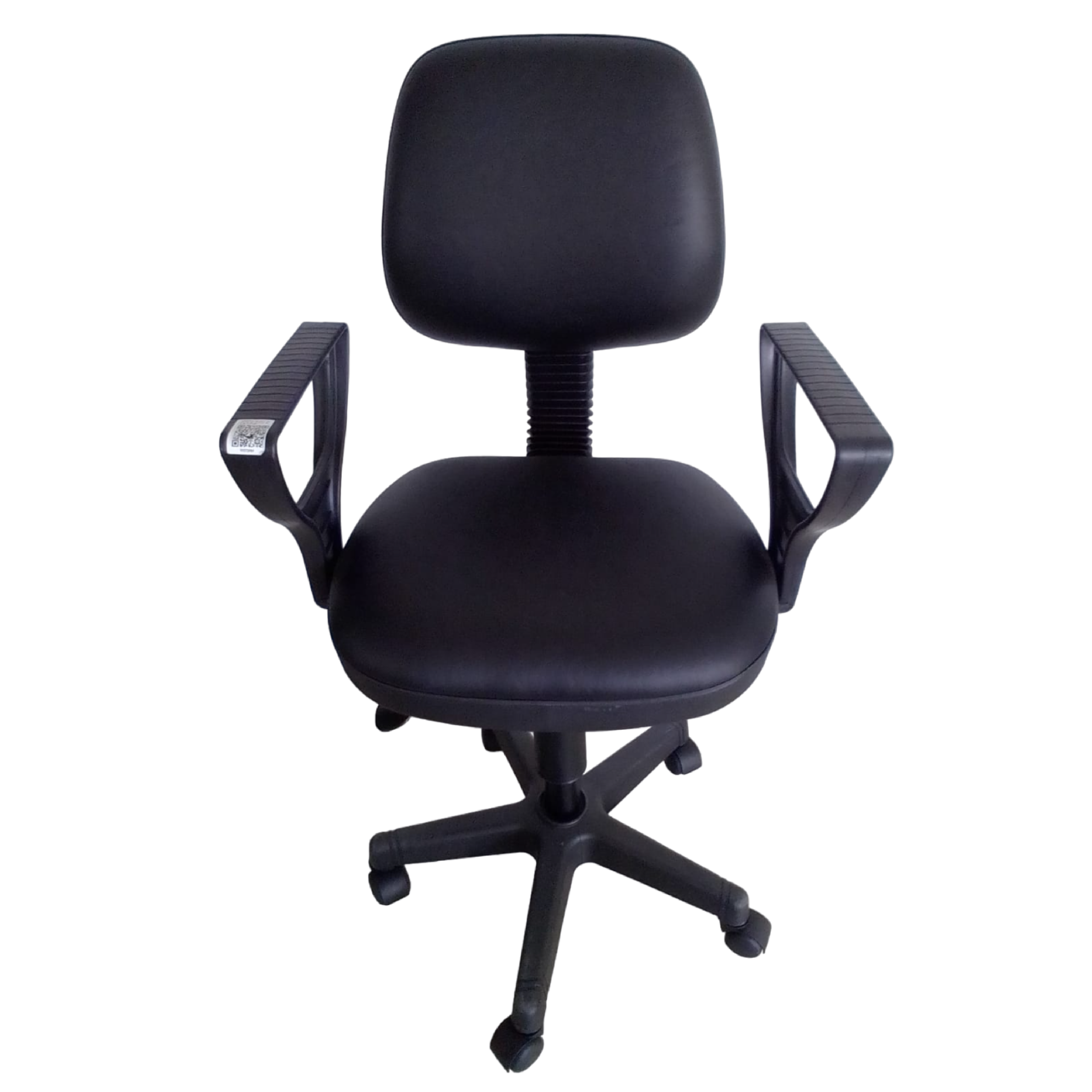 Regulable / Estrella plástica / Brazos plásticos / Asiento y respaldo tapizado en cuerina negra.