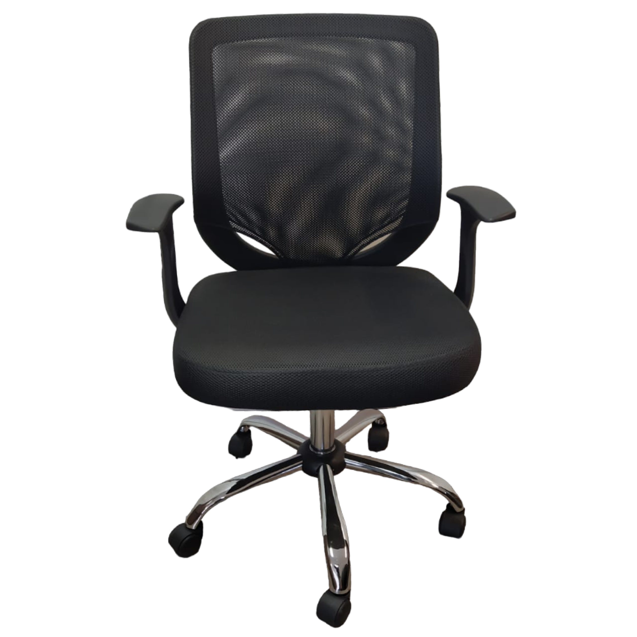 Ergonómico / Regulable / Estrella cromada / Con apoyabrazos plásticos / Tapizado tela mesh.