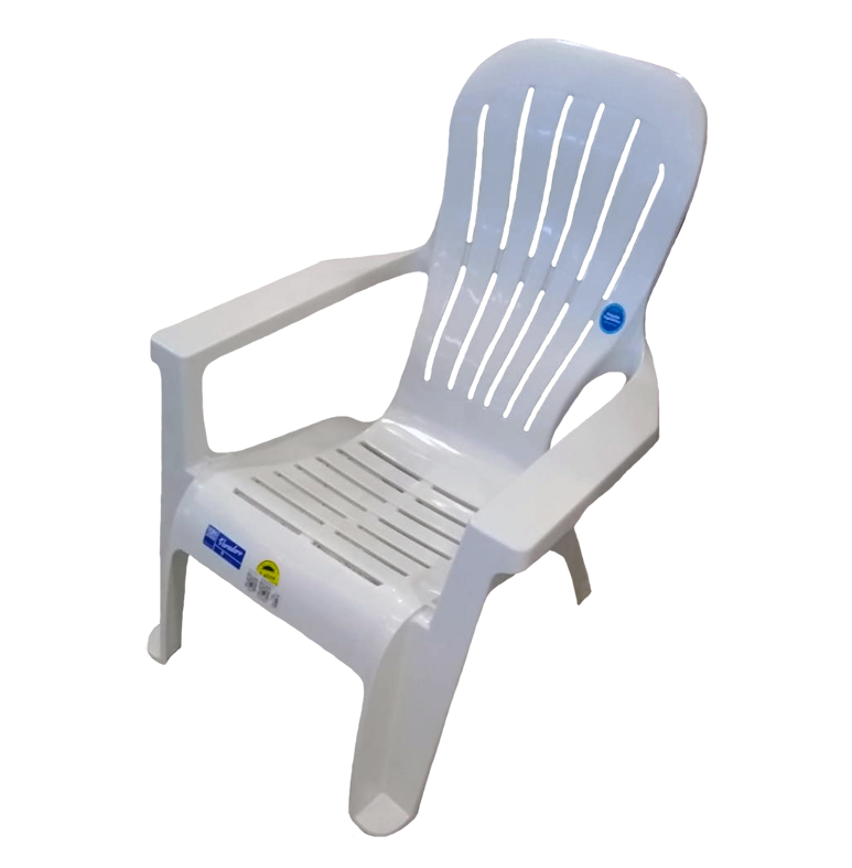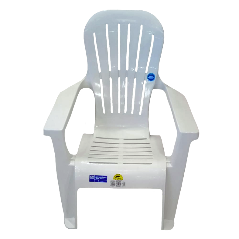 Sillón playero ergonómico apilable con brazos / Fabricado en polipropileno / Reforzado, soporta hasta 500Kg / Tecnología Duramax / Resistencia UV / Color blanco.