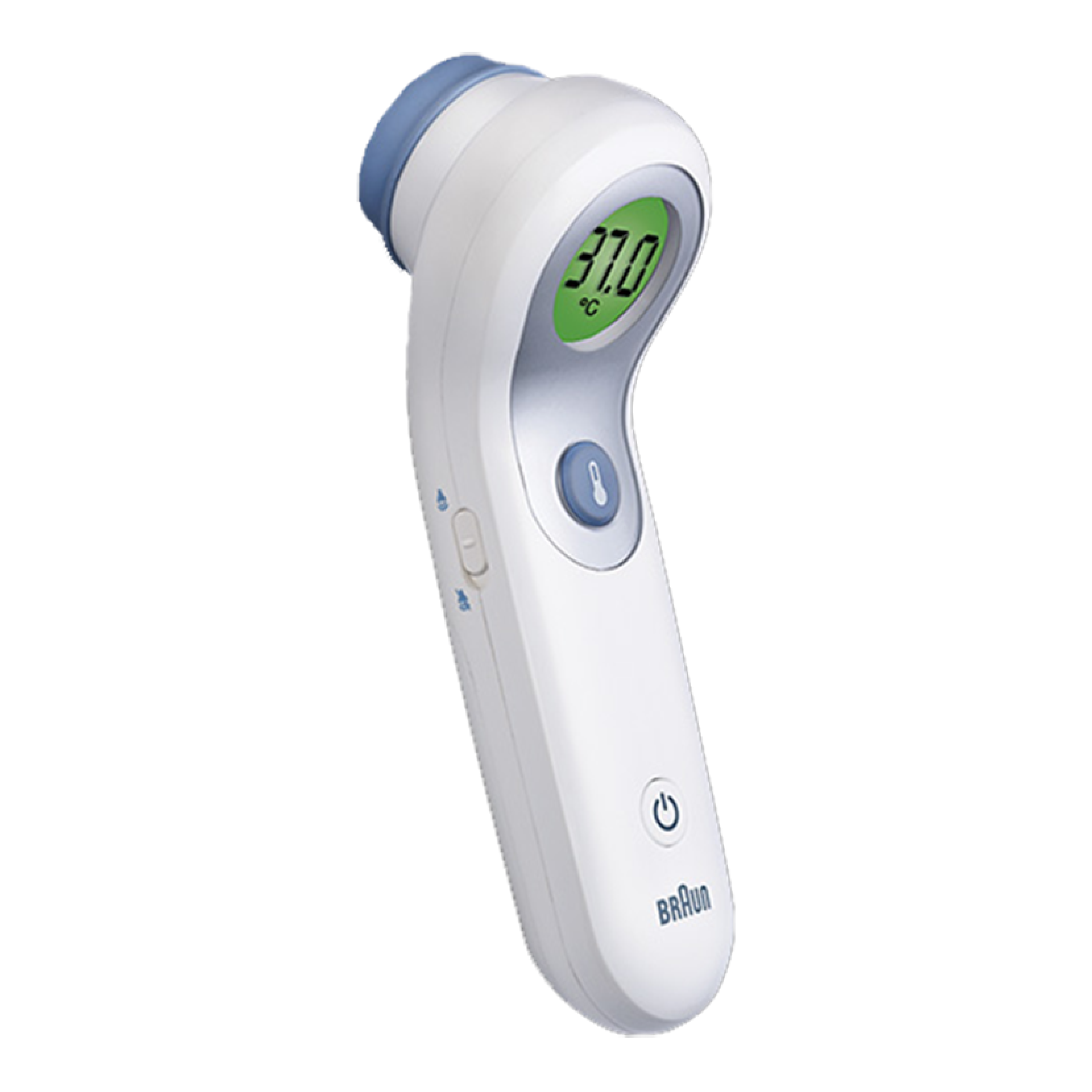 Termómetro con tecnología No Touch que permite una lectura constante y exacta sin contacto en 2 segundos / Pantalla con codificación por colores y retroiluminación para la noche / Modo silencioso.