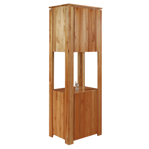 Fabricada en madera eucalipto / Terminación en poliuretano / 2 puertas y 1 estante visto / Medidas: 1.80×0.60×0.45.