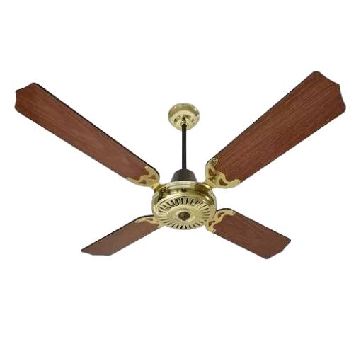 Motor tradicional / Carcaza plastica dorada/ 4 Palas de madera lustrada 15 cm de ancho/5 velocidades 270 RPM/ Porta palas dorado / 1.20Mts diametro de giro