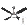 Ventilador de 4 palas de acero en color blanco / Motor AC de 85W, gran rendimiento y bajo consumo / Montado sobre rodamientos blindados / 3 velocidades / Con control remoto / Permite agregar luz.
