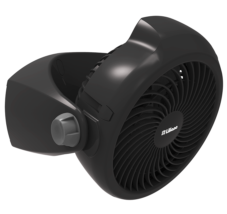 Ventilador turbo 10 pulgadas / Apto para piso, mesa y pared / 35W / 2 velocidades / 5 aspas plásticas / Reclinable / Color negro.