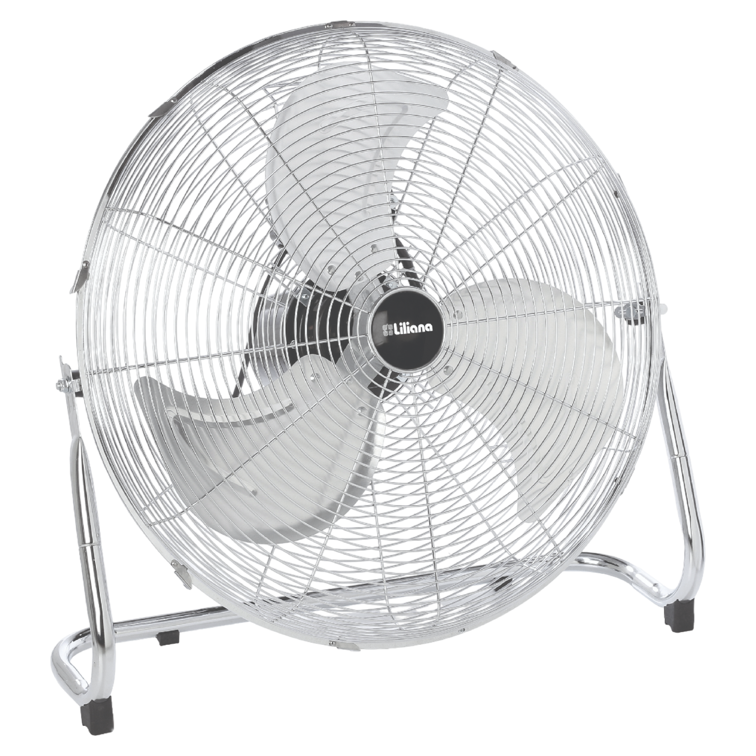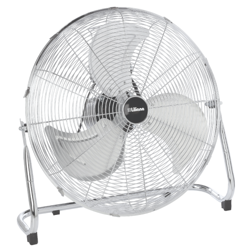 Ventilador turbo 22 pulgadas / 130W de potencia / Motor con doble rodamiento blindado / 3 velocidades / Súper silencioso / Cabezal reclinable / Aspas metálicas tipo trébol / Estructura y parrilla cromada.